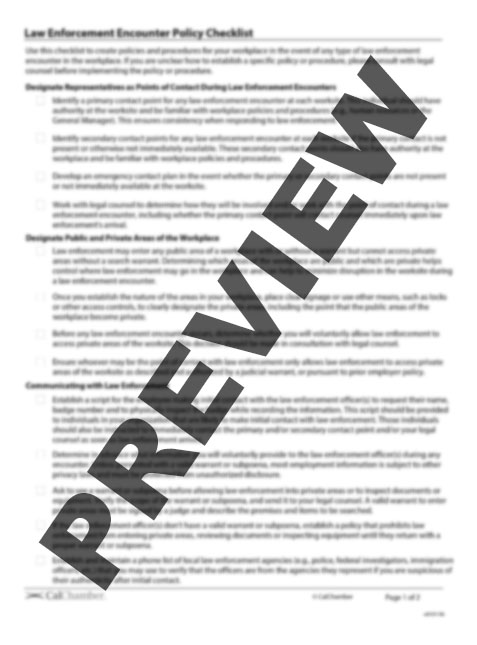 Use this checklist to create policies and procedures for your workplace in the event of any type of law enforcement encounter in the workplace.