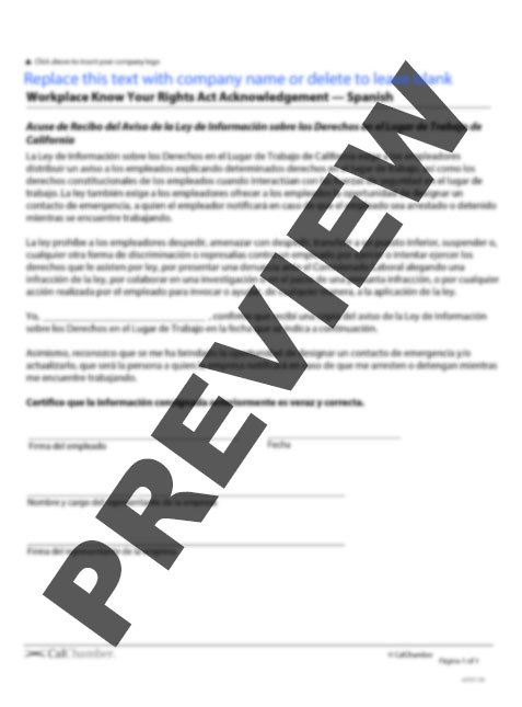 Workplace Know Your Rights Act Acknowledgment — Spanish